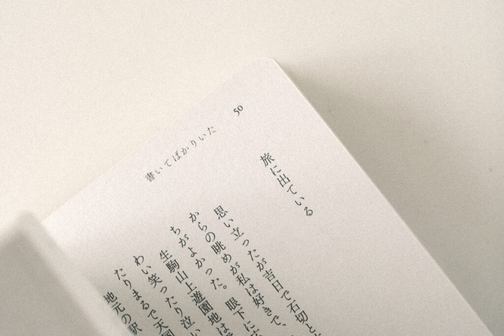 A6文庫サイズカバー付、モノクロの全132ページ。表紙は里紙、本文用紙はモンテシオン、カバーはヴァンヌーボVG ホワイトを使用しています。